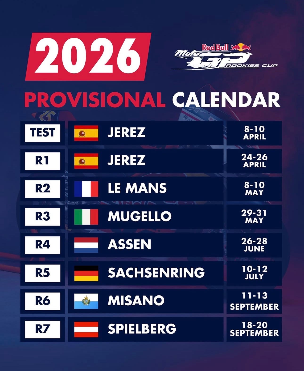 2026 Red Bull Rookies Calendar: