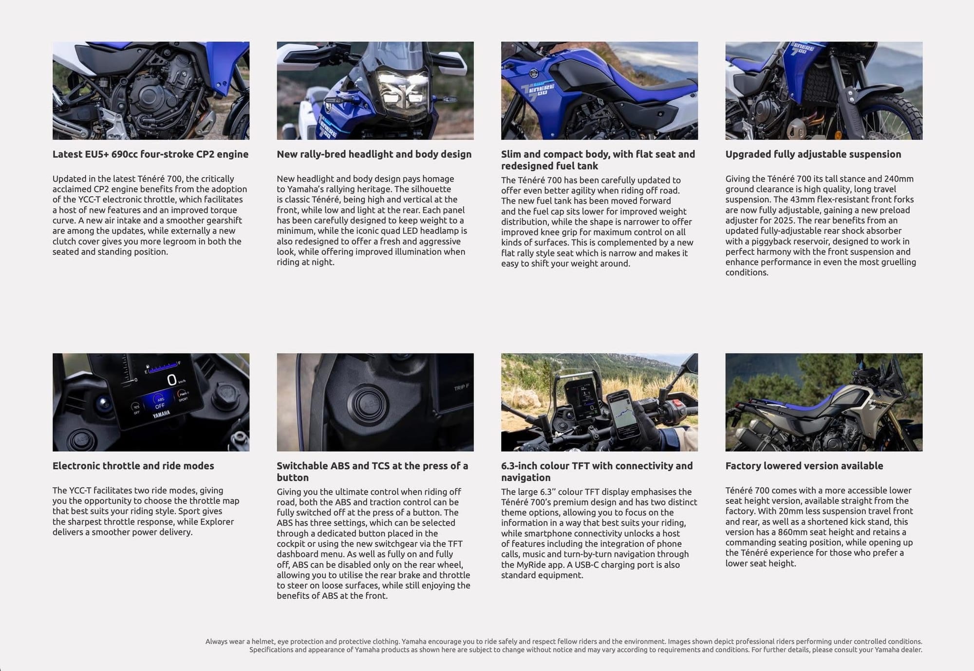 ✅ New Full-Color TFT Screen: Replacing the analog setup, the crisp 5" TFT dashboard offers smartphone connectivity via Yamaha's MyRide app for navigation, calls, and music. 6.3" on (Ténéré 700 Rally and Standard)