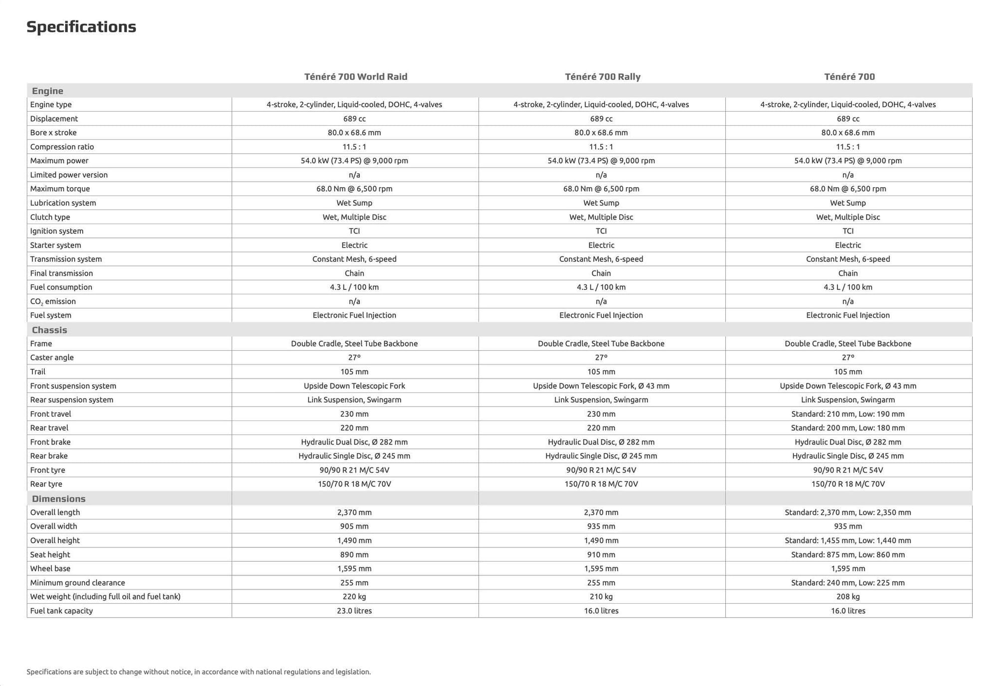 Also launched, Ténéré 700 Rally and Ténéré 700 standard. See photos below for specs difference.